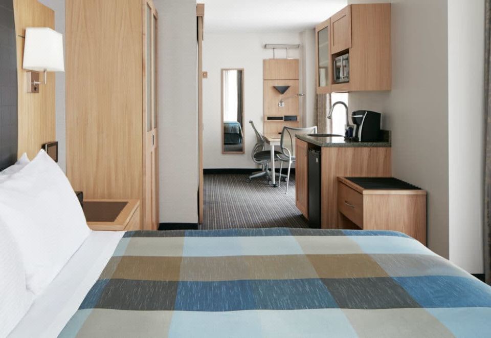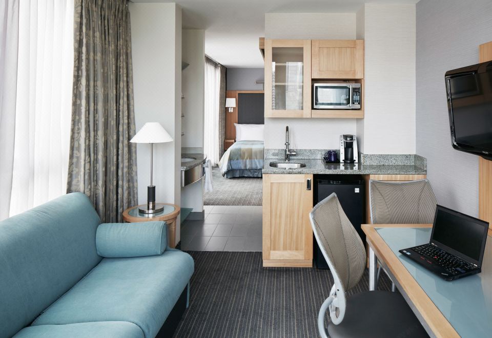 一室套房配有微波炉和冰箱