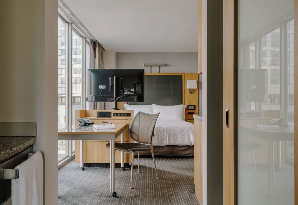 一室套房配有微波炉和冰箱