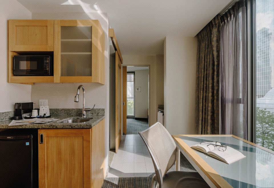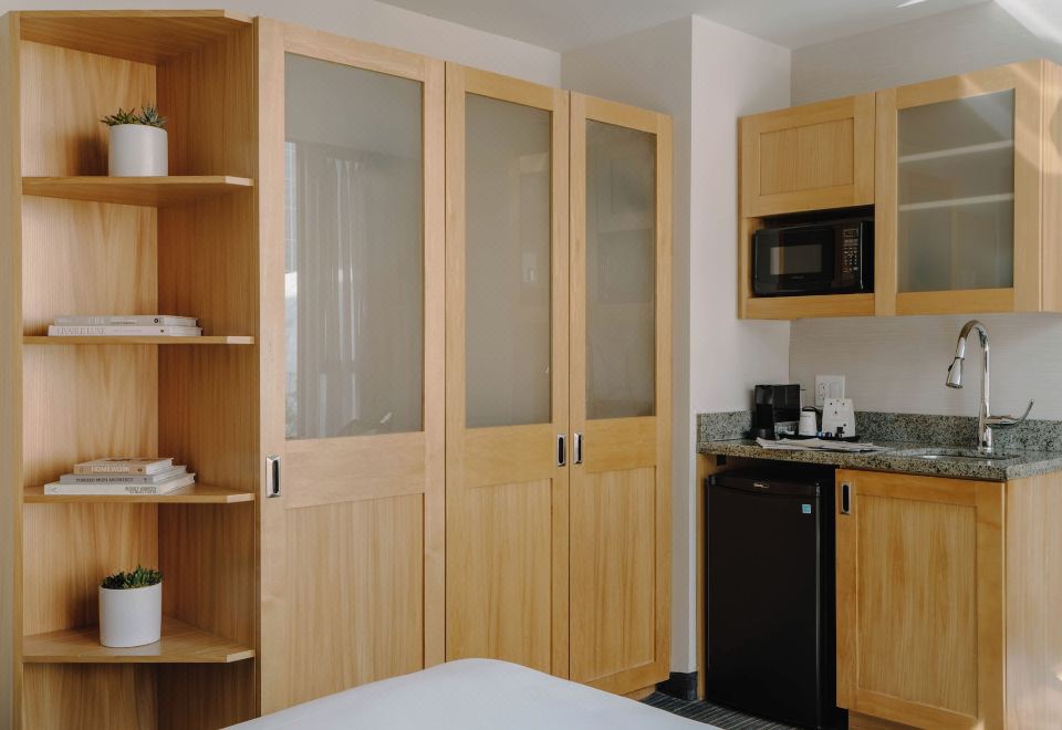 一室套房配有微波炉和冰箱